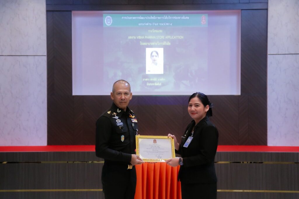 เมื่อวันที่ 23 มกราคม 2569 เวลา 09.00 น. โรงพยาบาลค่ายวิภาวดีรังสิต มณฑลทหารบกที่ 45 เข้ารับประกาศนียบัตร และ เงินรางวัลการประกวดการพัฒนาประสิทธิภาพการให้บริการช่องทางพิเศษแบบเร่งด่วน(Fast track) ผลงาน VIBHA’S PHARMA STORE APPLICATION ในพิธีมอบรางวัลเชิดชูเกียรติให้แก่หน่วยและกำลังพลผู้มีผลงานดีเด่น เพื่อส่งเสริมขวัญกำลังใจและยกย่องความเสียสละในการปฏิบัติหน้าที่ โดยมี พลตรี เฉลิมพร ขำเขียว รองแม่ทัพภาคที่ 4 ผู้แทนแม่ทัพภาคที่ 4 เป็นประธานในพิธี