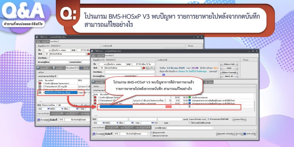 3. โปรแกรม BMS-HOSxP V3 พบปัญหา รายการยาหายไปหลังจากกดบันทึก สามารถแก้ไขอย่างไร