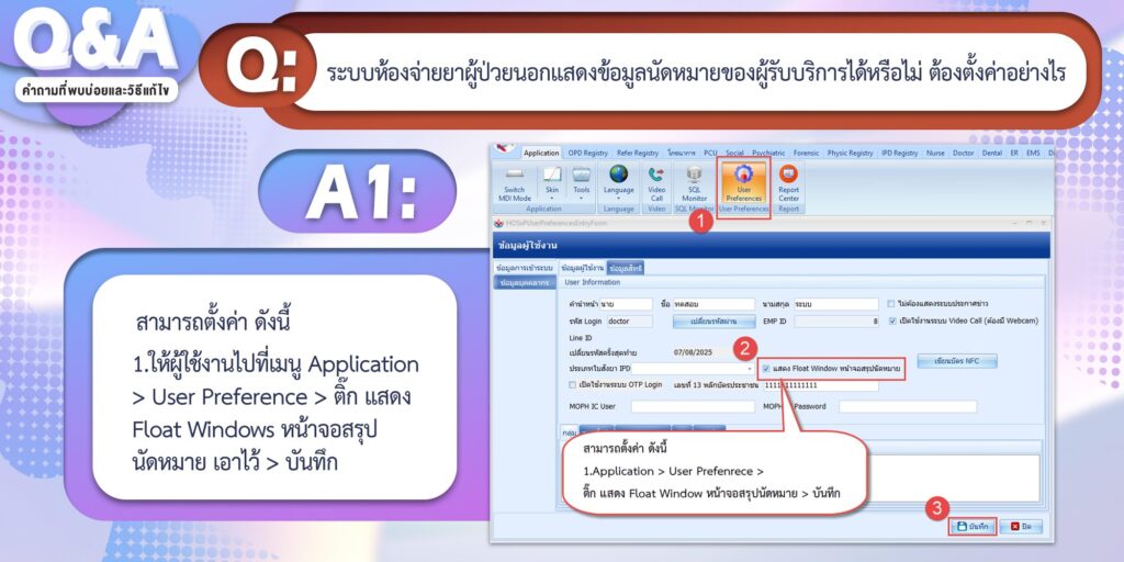 2. ระบบห้องจ่ายยาผู้ป่วยนอกแสดงข้อมูลนัดหมายของผู้รับบริการได้หรือไม่ ต้องตั้งค่าอย่างไร
