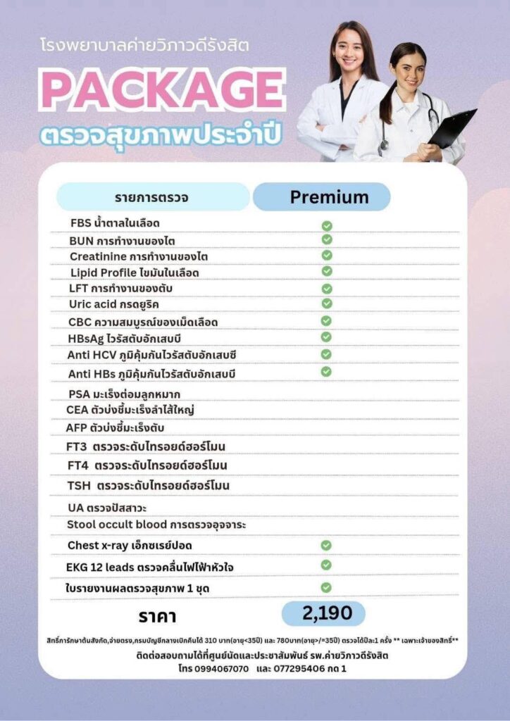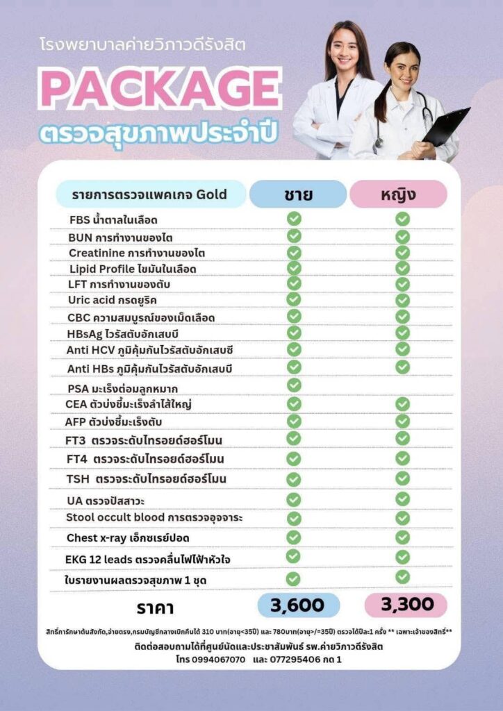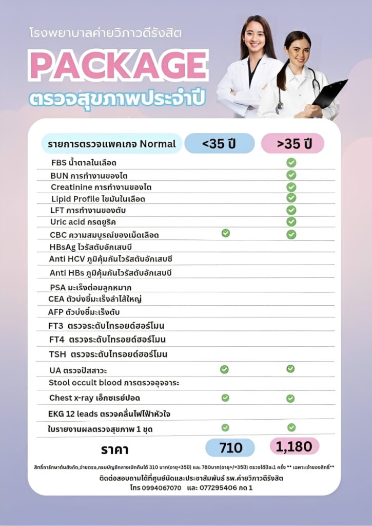 แพคเกจการตรวจสุขภาพประจำปี สำหรับประชาชนทั่วไป